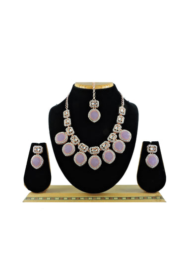 Alloy Material Lavender Stone Necklace Set With Earrings
