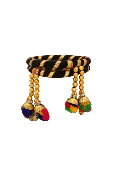 Black Color Silk Thread Customized Handmade Bangles With Pom Pom Latkan