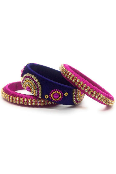 Silk Thread Handmade Customized Purple And Rani Color Bangle Set