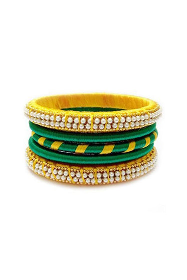 Silk Thread Handmade Customized Yellow And Green Bangle Set