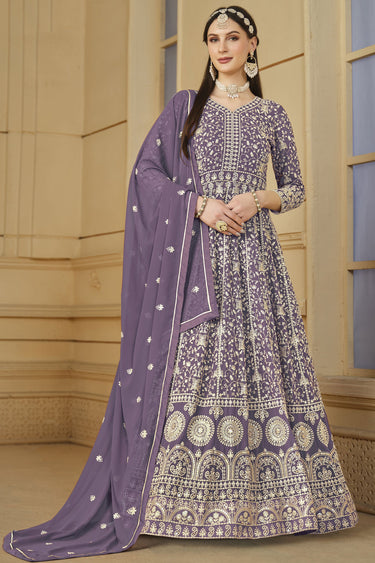 Georgette Fabric Embroidered Function Wear Anarkali Salwar Suit In Lavender Color