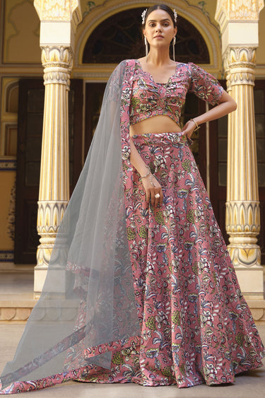 Pink Color Printed Art Silk Fabric Lehenga Choli With Dupatta
