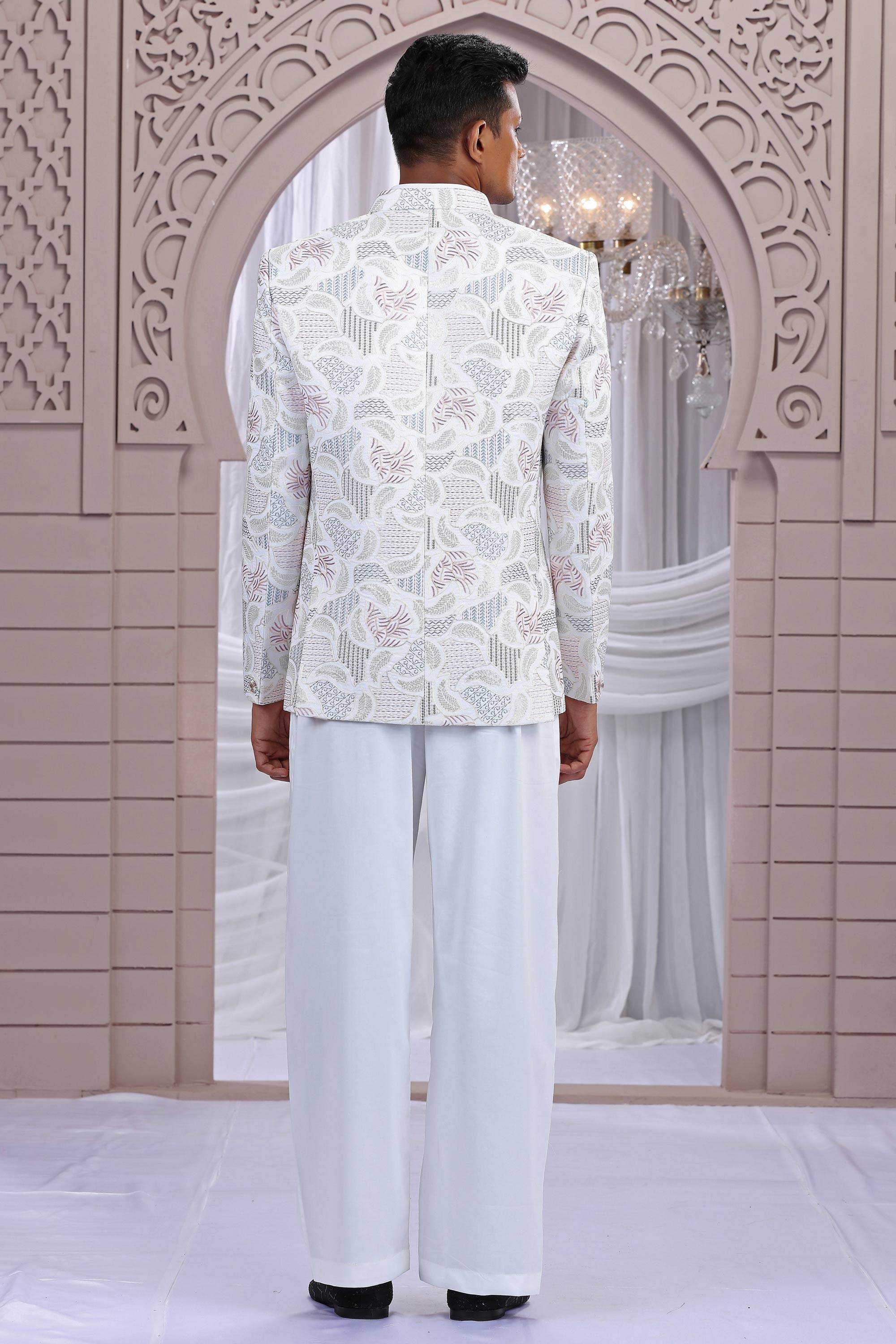 Off White Gorgeous Art Silk Wedding Wear Readymade Indo Western Jodhpuri Suit For Men