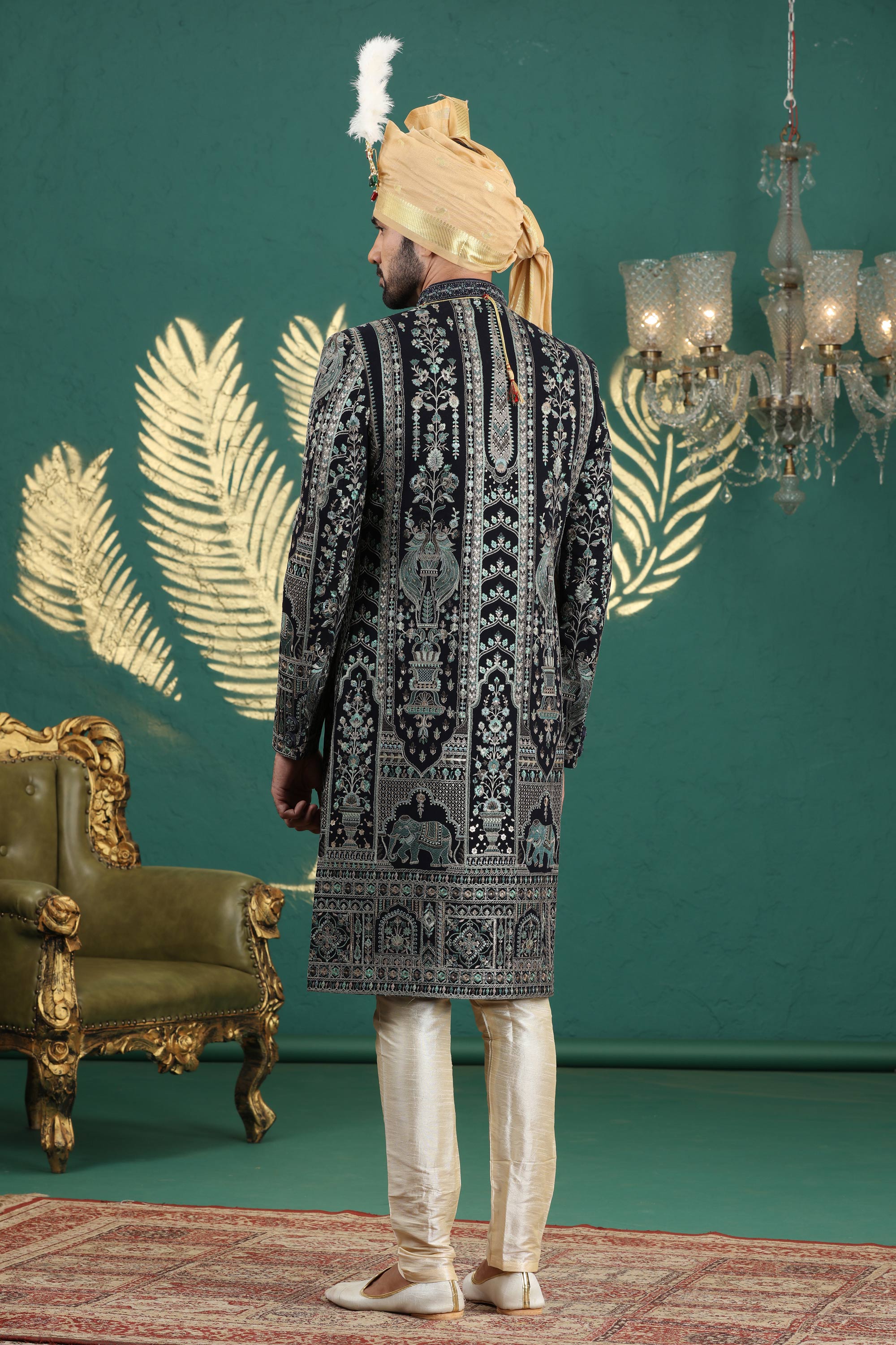 Celebrate traditional elegance with the Heavy Embroidered Art Silk Wedding Wear Readymade Groom Sherwani for Men. Crafted from art silk fabric, this sherwani is adorned with stunning embroidery, perfect for weddings or other festive occasions. Its ready-to-wear design offers an effortless fit and ensures maximum comfort without compromising on style. This versatile ensemble pairs wonderfully with traditional footwear for a polished and timeless look. Dress to impress and make a refined statement with this sherwani designed for those special once-in-a-lifetime celebrations.