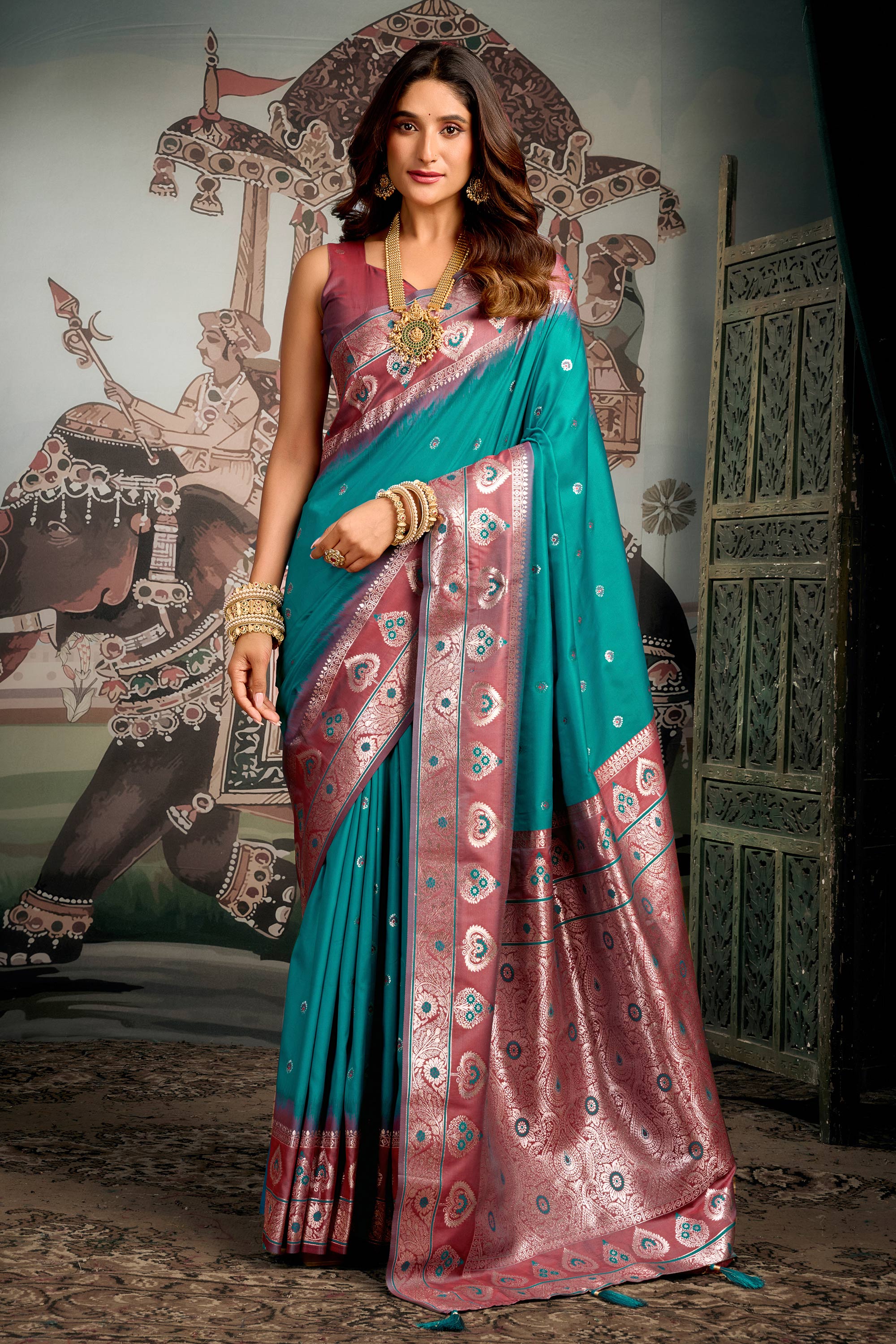 Cyan Art Silk Weaving Work Festive Wear Fancy Saree