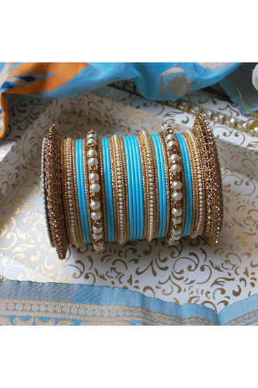 Alloy Material Cyan Color Graceful Bridal Bangle Set With Pacheli Kada