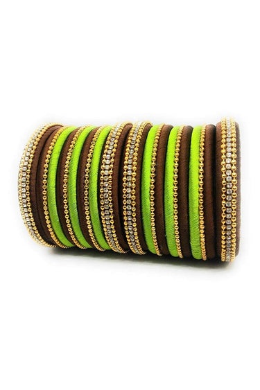 Brown And Green Handmade Silk Thread Designer Bangles Set For Function