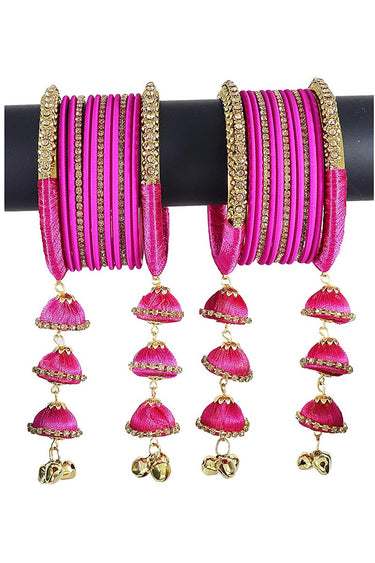 Designer Silk Thread Handmade Bangle Jewellery With Latkan In Magenta