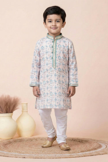 Cotton Fabric Off White Readymade Kurta Pyjama For Boys