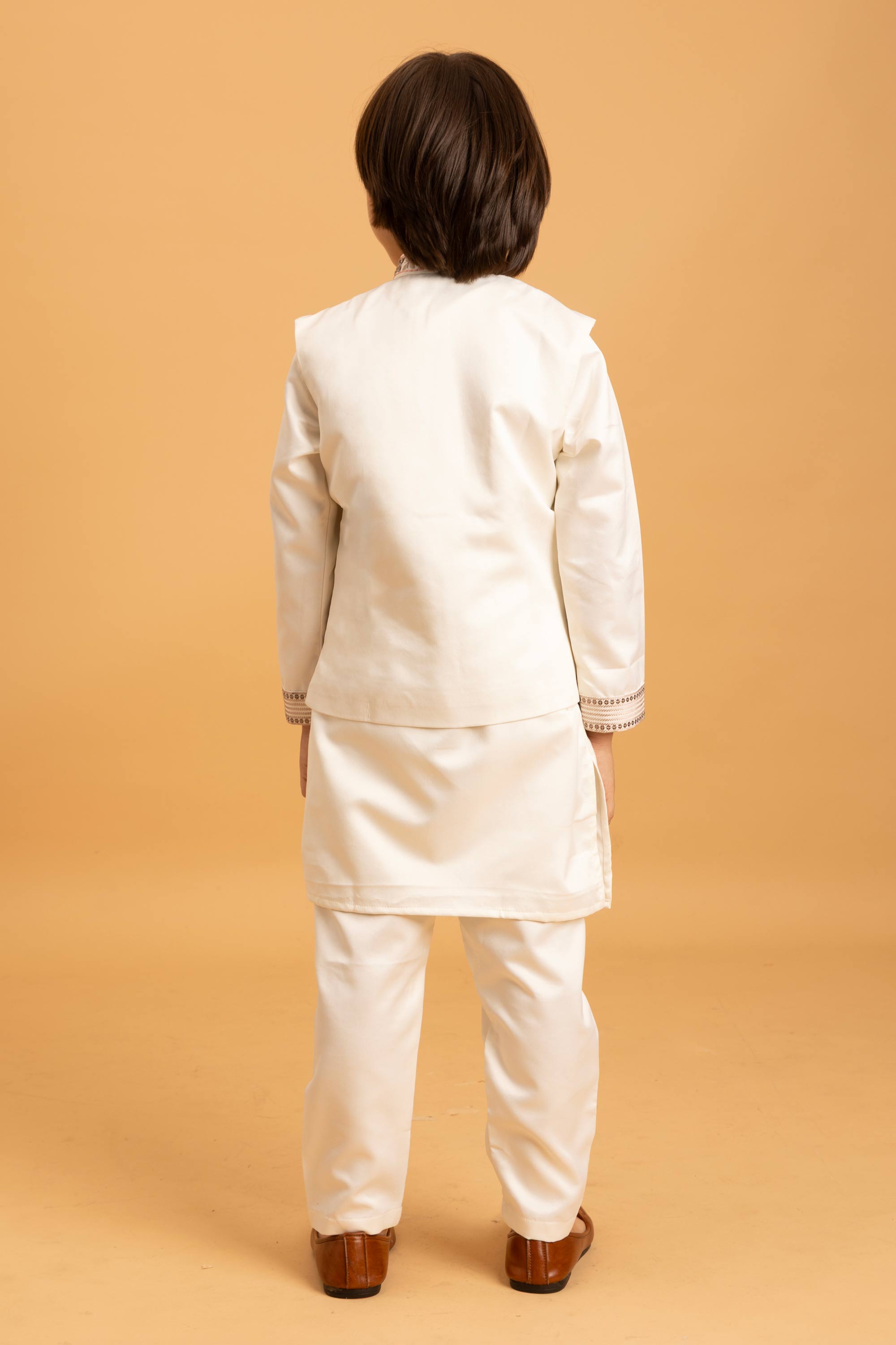 Satin Off White Occasion Wear Readymade Boys Kurta Pyjama With Jacket