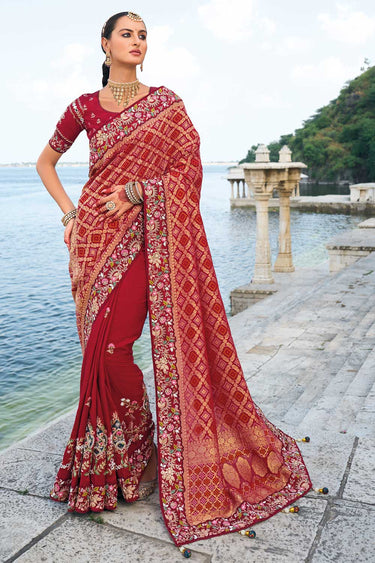 Heavy Embroidered Work Silk Fabric Maroon Color Supreme Saree