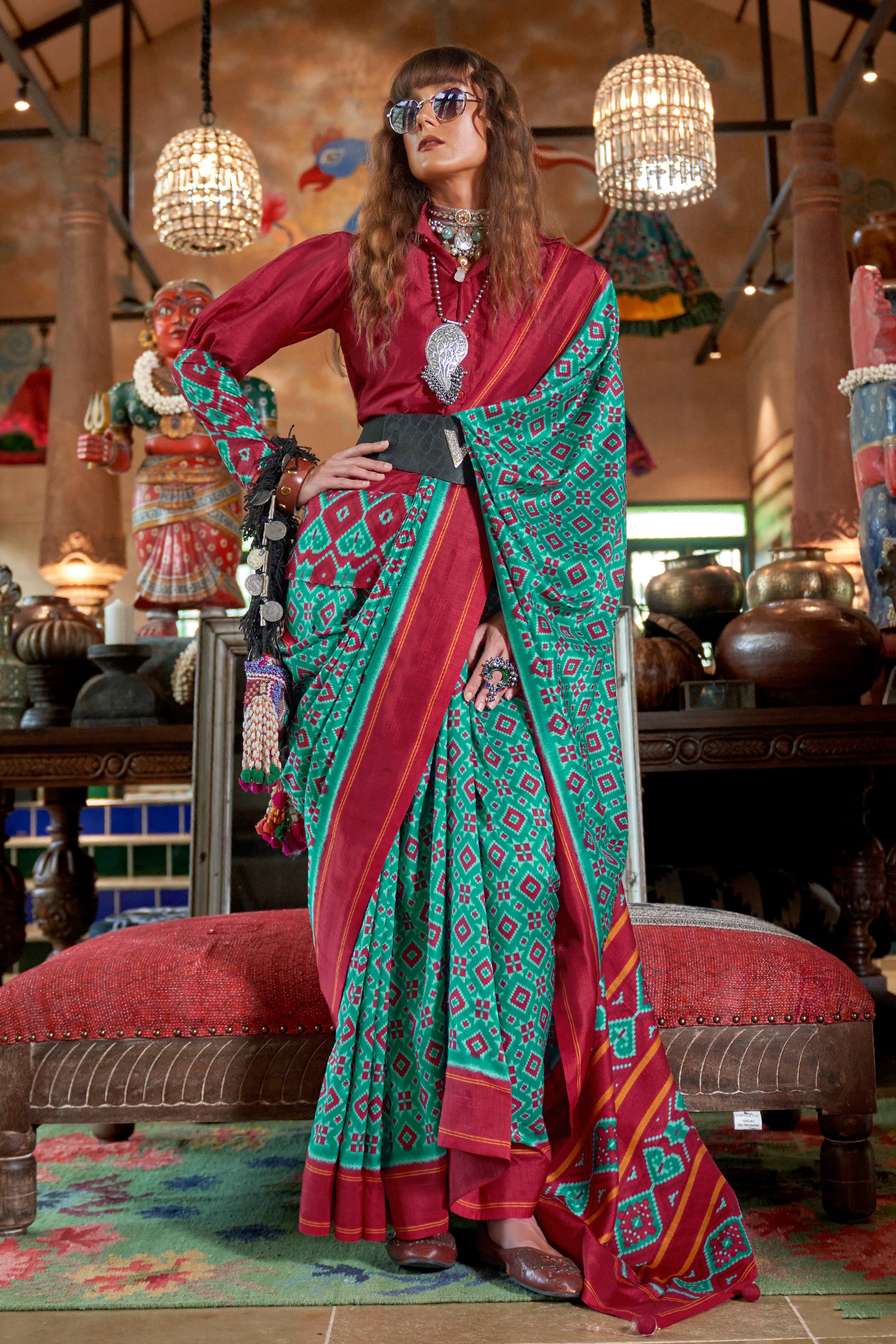 Art Silk Cyan Patola Printed Casual Wear Saree