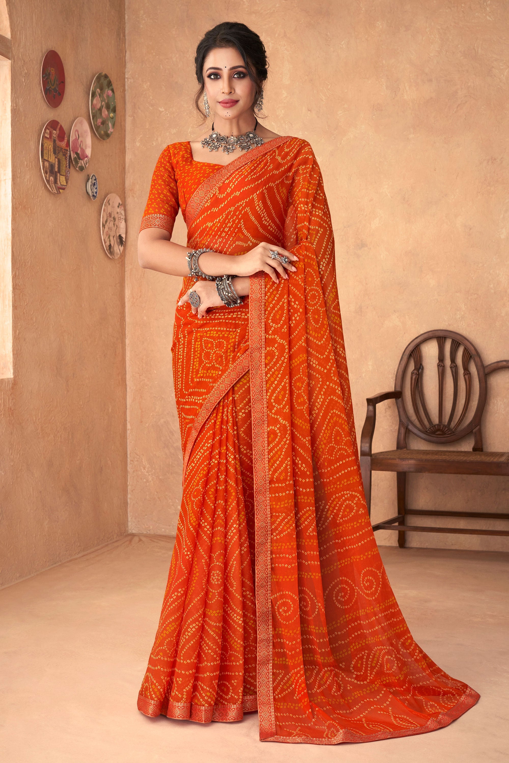 Enhance your wardrobe with this graceful Bandhani Print Chiffon Saree featuring a classic Banarasi border for added charm. Designed for daily wear, its lightweight and breathable material ensure unmatched comfort, making it an excellent choice for casual outings or small gatherings. The set includes matching blouse fabric, offering versatility and ease when putting together the perfect look. This saree is an effortless way to embrace traditional design while staying stylish and comfortable for any day of the week.