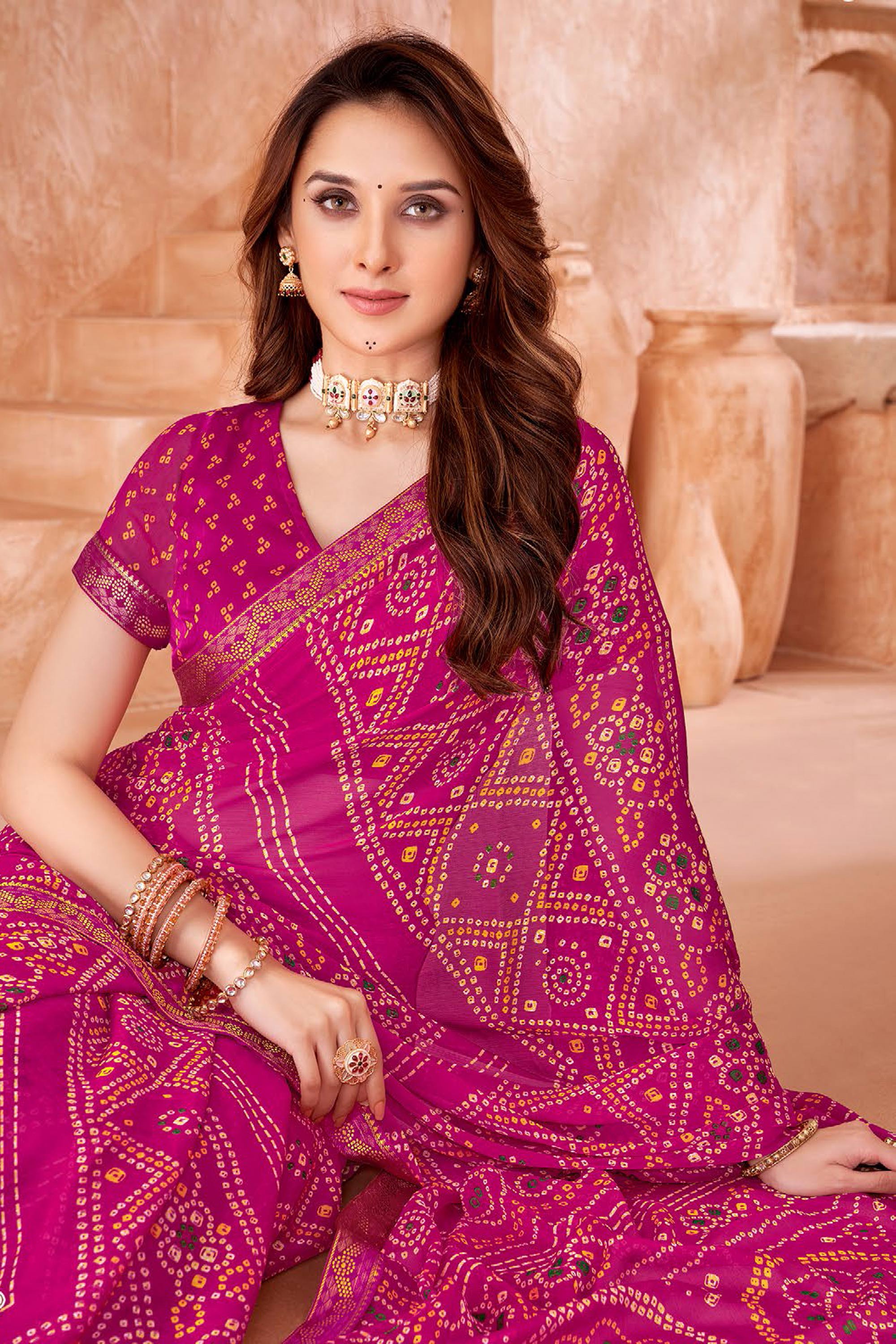 Magenta Chiffon Bandhani Print Saree