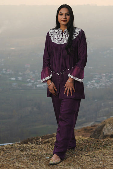 Exclusive Purple Cotton Embroidered Co-Ord Set