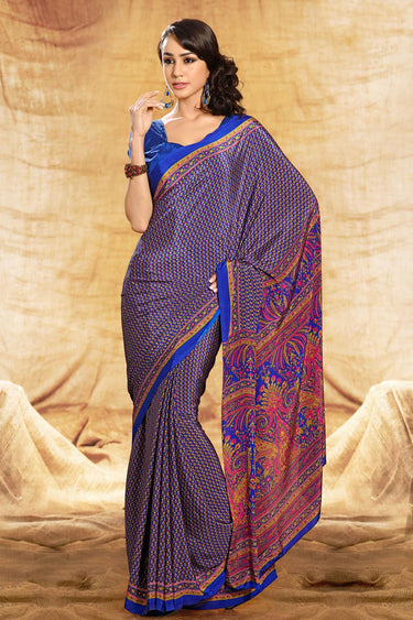 Dark Blue Color Crepe Fabric Occasion Wear Uniform Saree