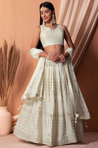 Off White Color Beautiful Sequins Designs Georgette Lehenga Choli