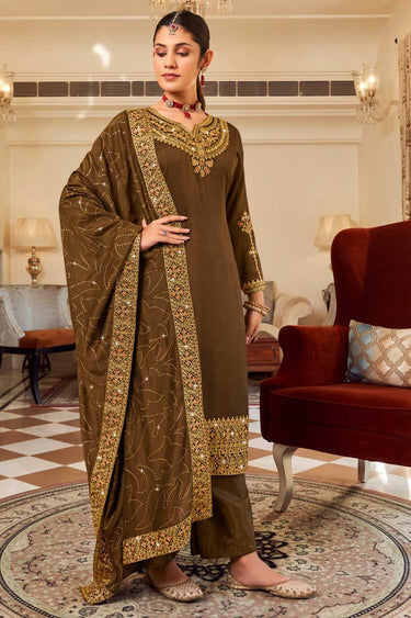 Engaging Brown Color Vichitra Fabric Pakistani Replica Suit