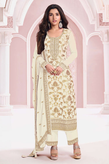 Nidhi Shah Trendy White Color Viscose Fabric Salwar Suit