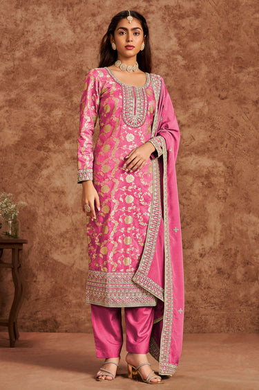 Pink Color Festive Wear Embroidered Designer Salwar Kameez In Jacquard Silk Fabric