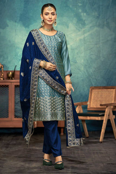 Teal Color Vichitra Fabric Embroidered Classic Salwar Suit