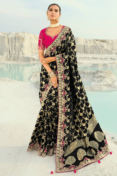 Border Work Black Function Wear Designer Saree With Embroidered Blouse