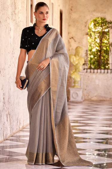 Imposing Fancy Linen Saree With Velvet Blouse In Grey Color