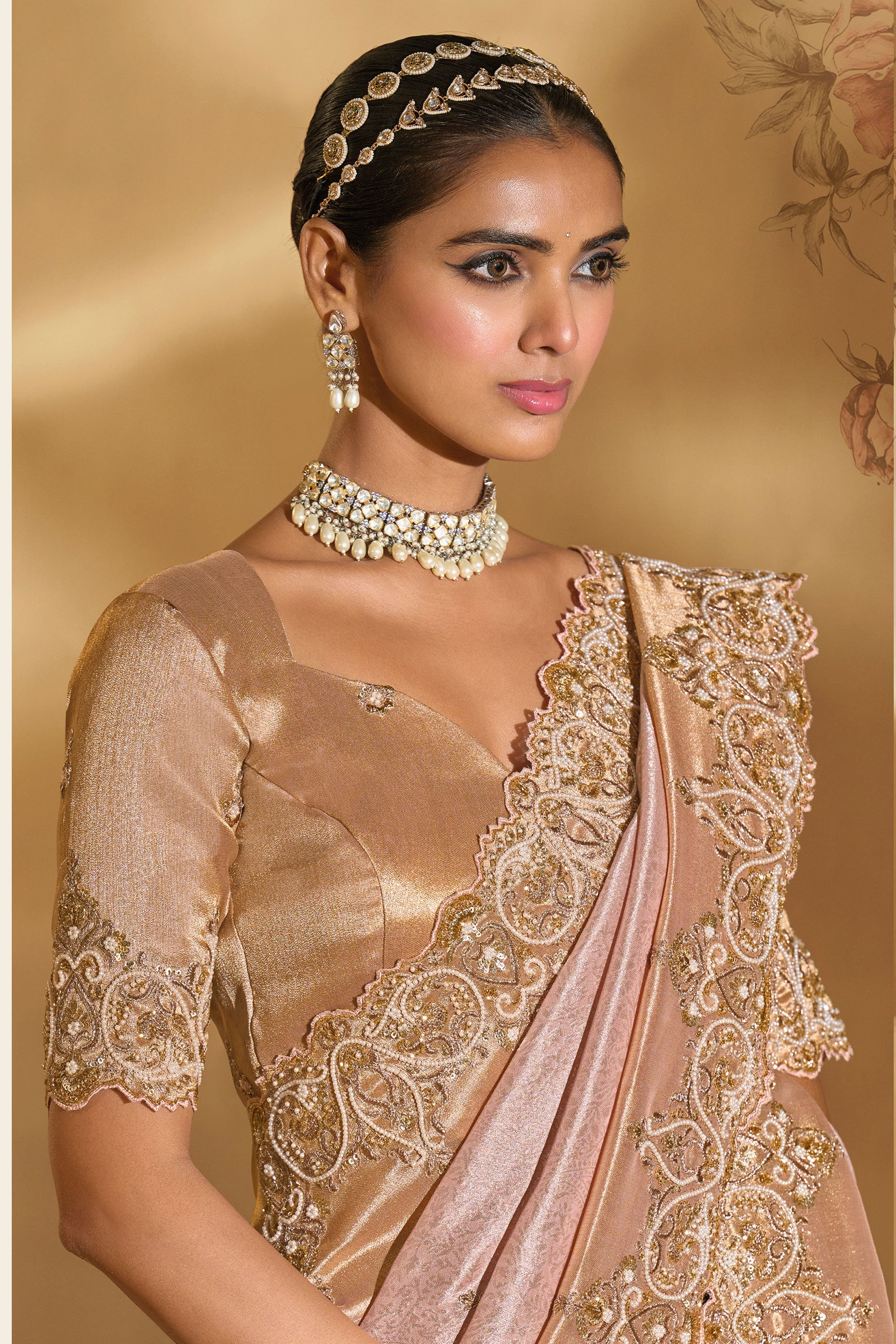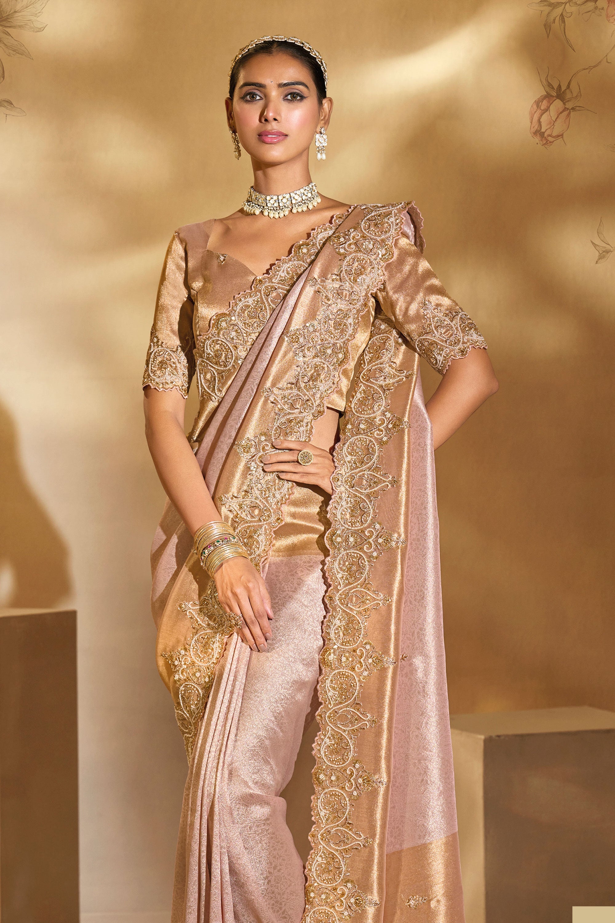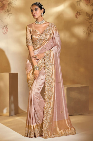 Pink Color Sober Heavy Embroidered Saree In Silk Fabric