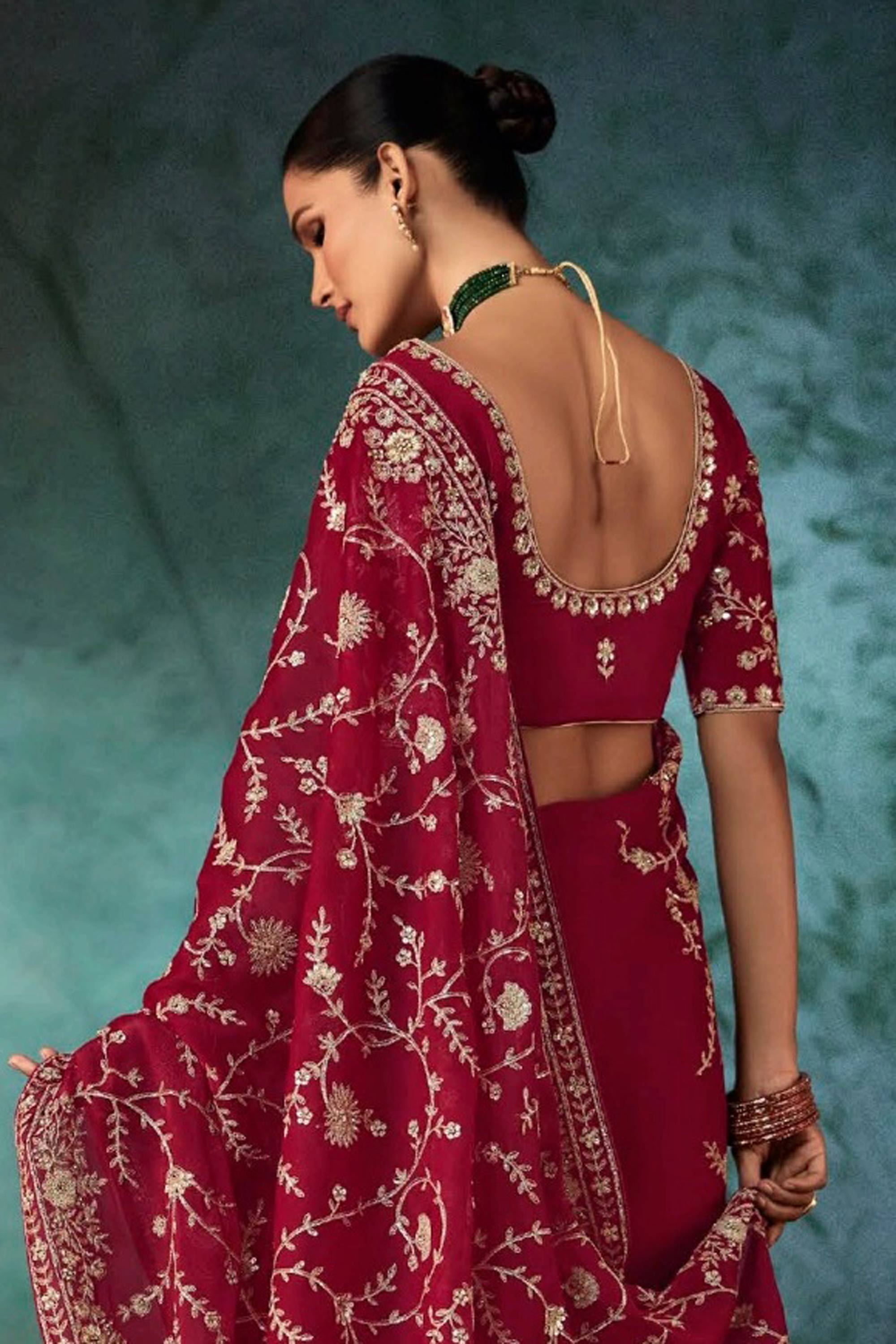 Rani Wedding Wear Fancy Fabric Embroidered Saree