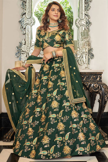 Elevate your style quotient and leave a lasting impression with our exquisite Dark Green Color Lehenga. Order now and experience the perfect blend of tradition, elegance, and contemporary fashion.
