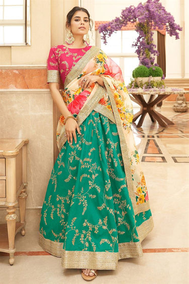 Art Silk Fabric Sangeet Wear Vivacious Lehenga In Green Color