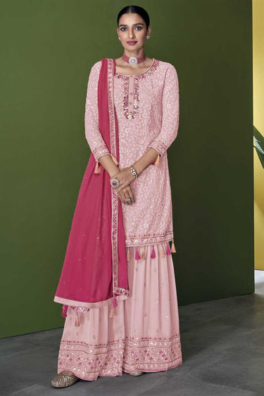 Georgette Fabric Function Wear Pink Color Delicate Palazzo Suit