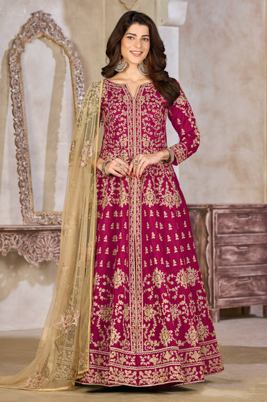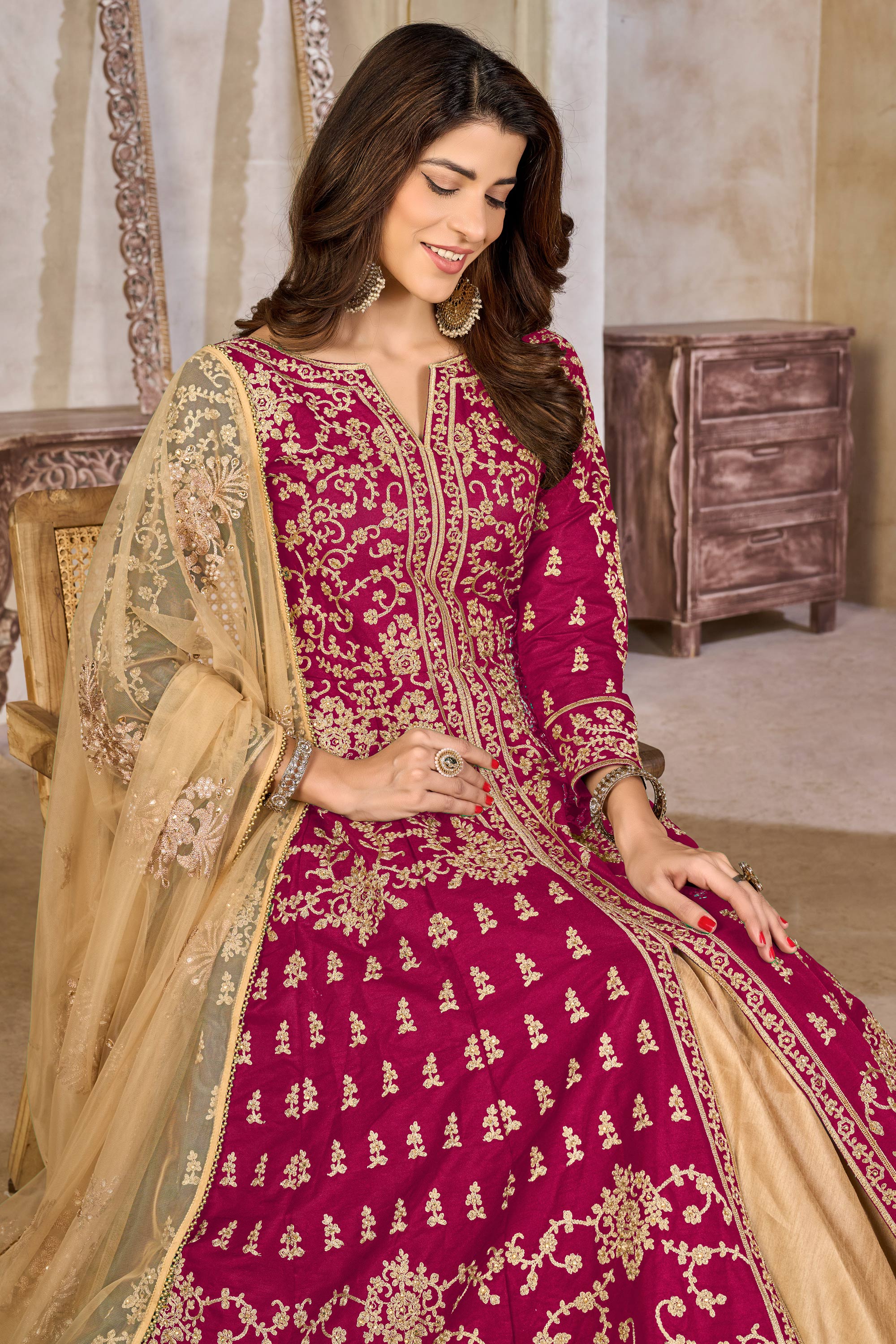 Magenta Art Silk Designer Long Flair Anarkali Salwar Kameez