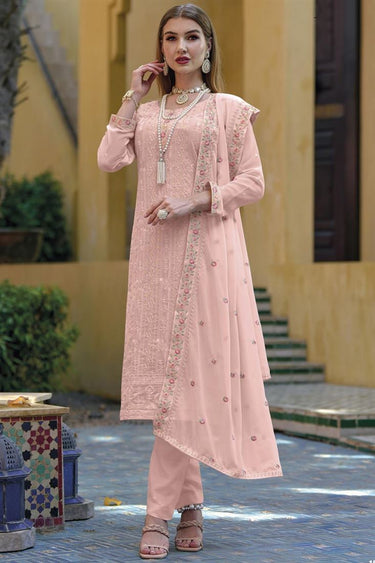 Introducing our latest Designer Peach Salwar Suit, crafted to perfection for the ultimate party look. Made with premium quality Georgette, this salwar suit is designed to accentuate your beauty and leave a lasting impression.