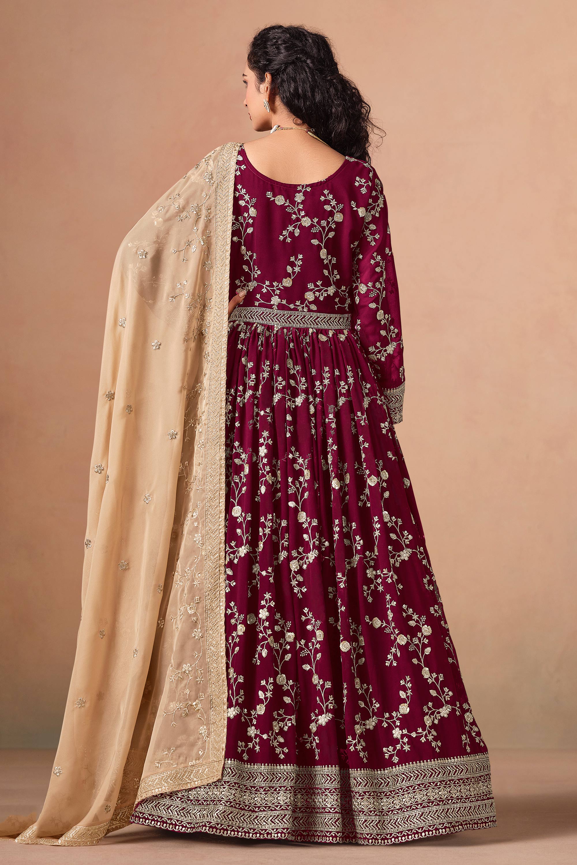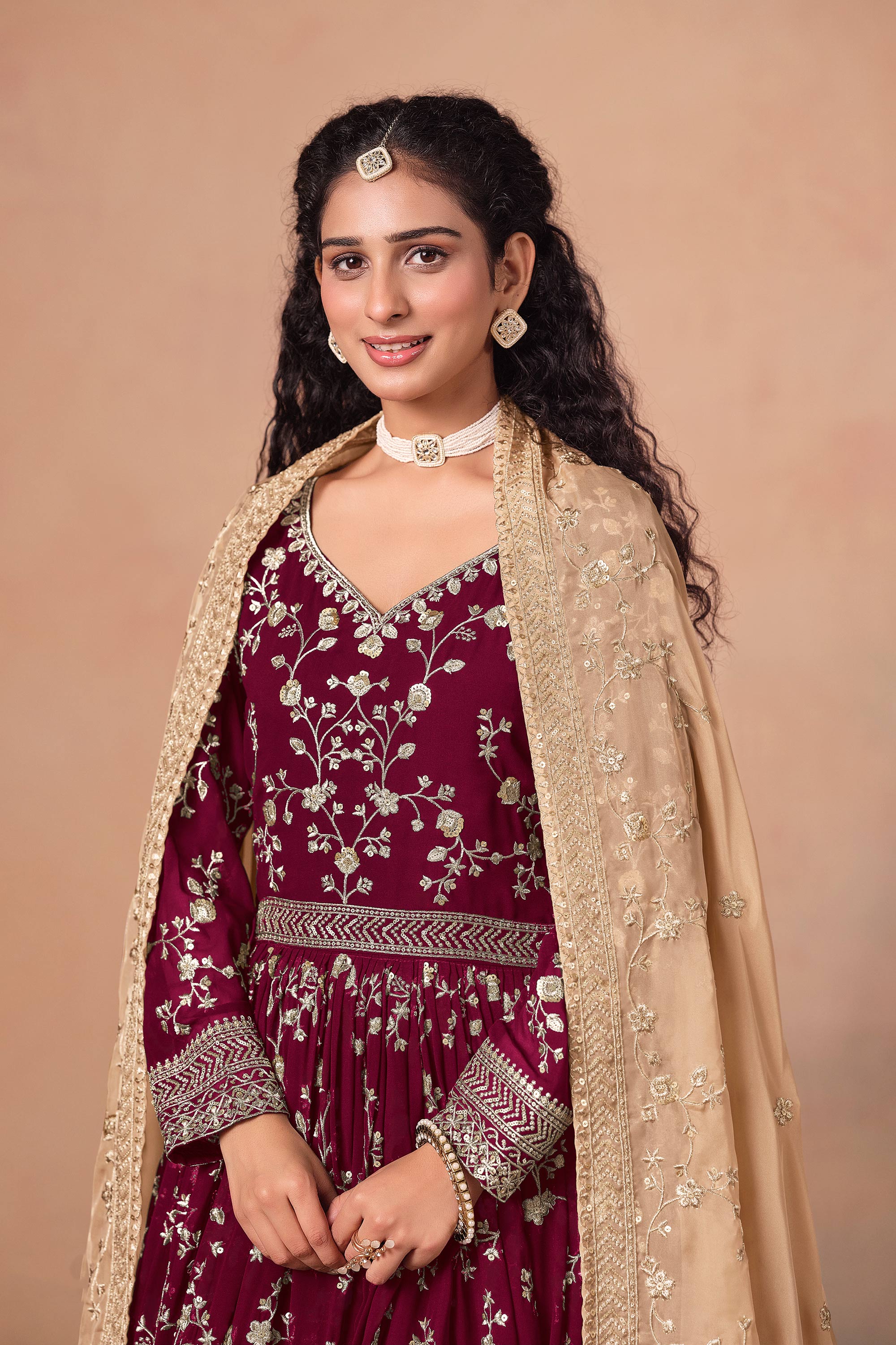 Wine Festive Wear Faux Georgette Anarkali Suit