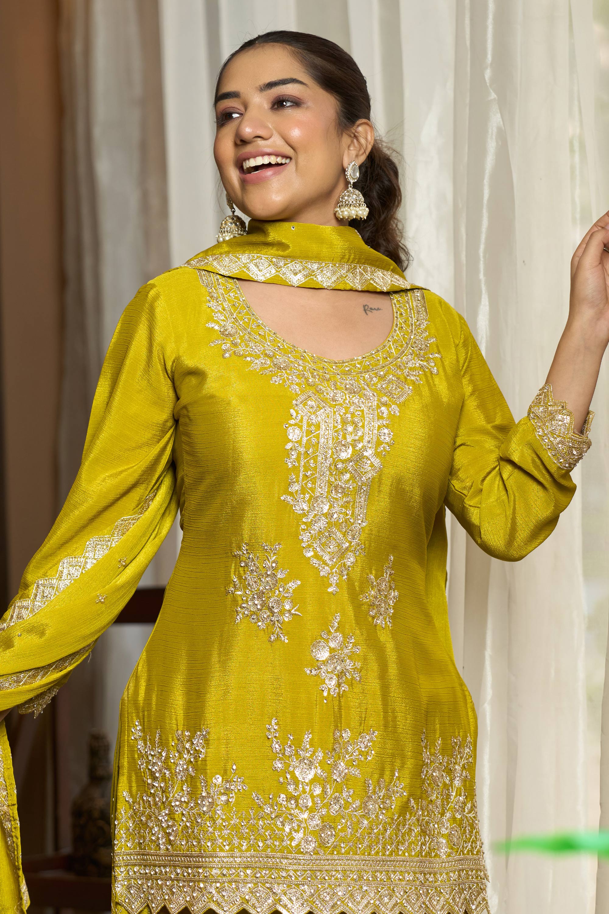 Heavy Embroidered Yellow Readymade Palazzo Salwar Suit