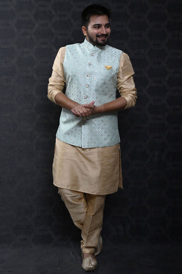 Function Wear Art Silk Fabric Readymade Lovely Men Kurta Pyjama With Blue Color Jacket