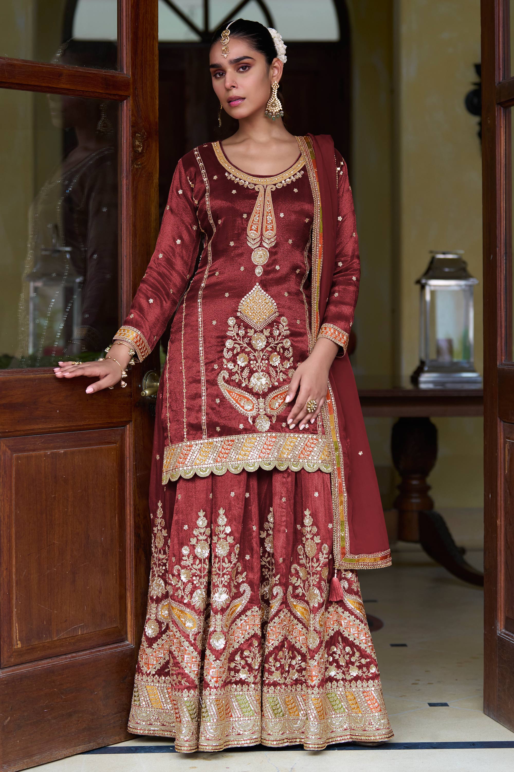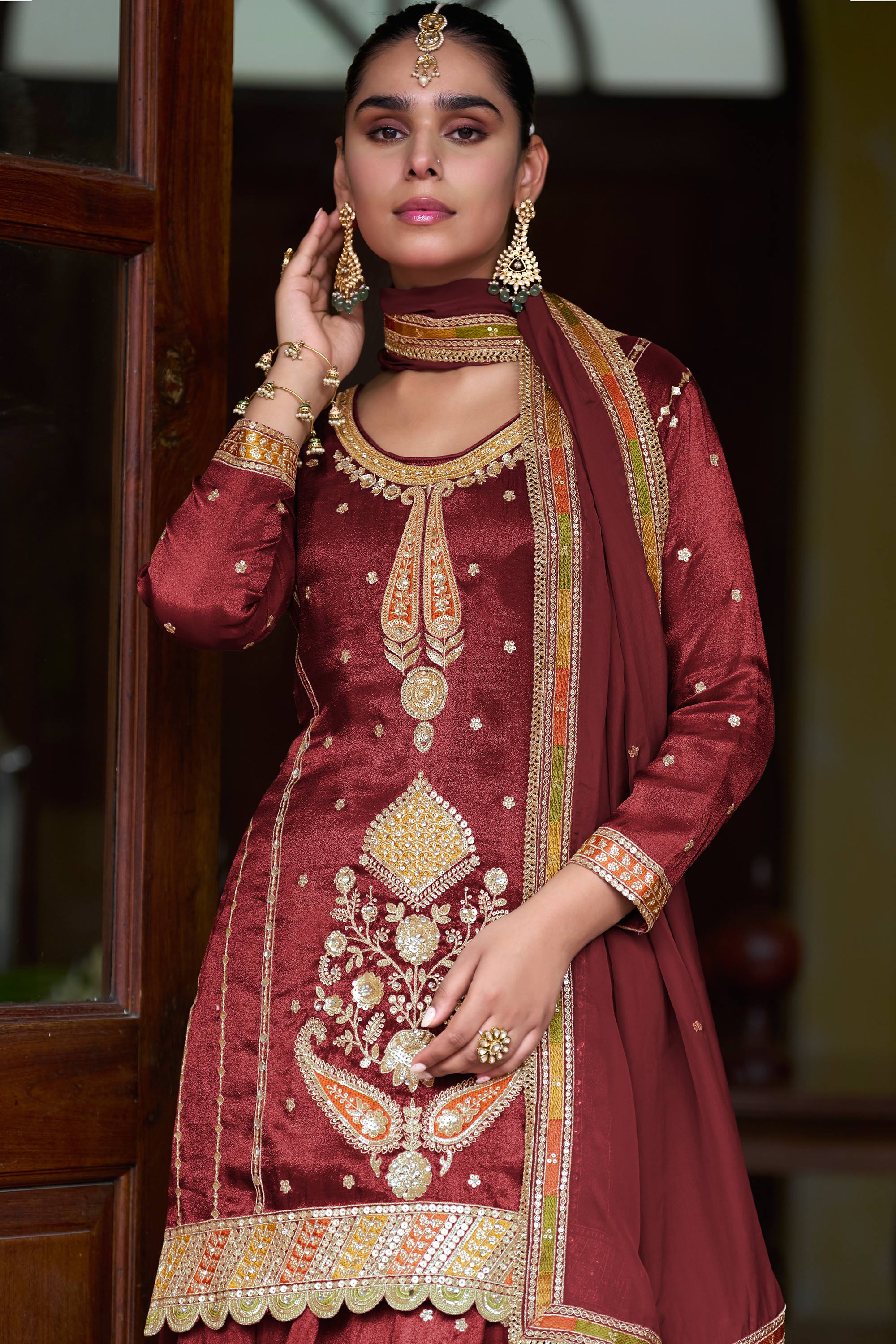Maroon Embroidered Readymade Palazzo Salwar Suit