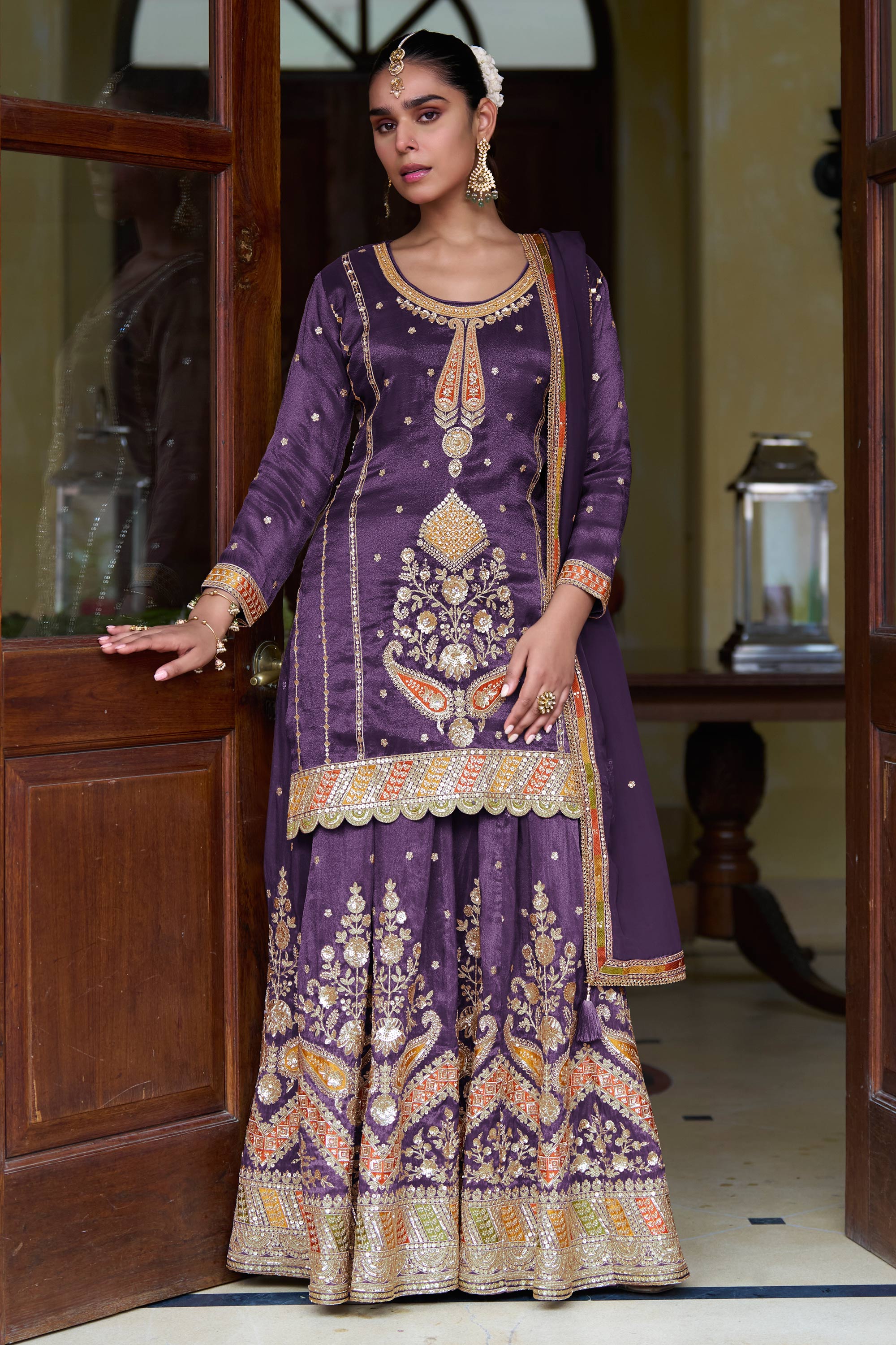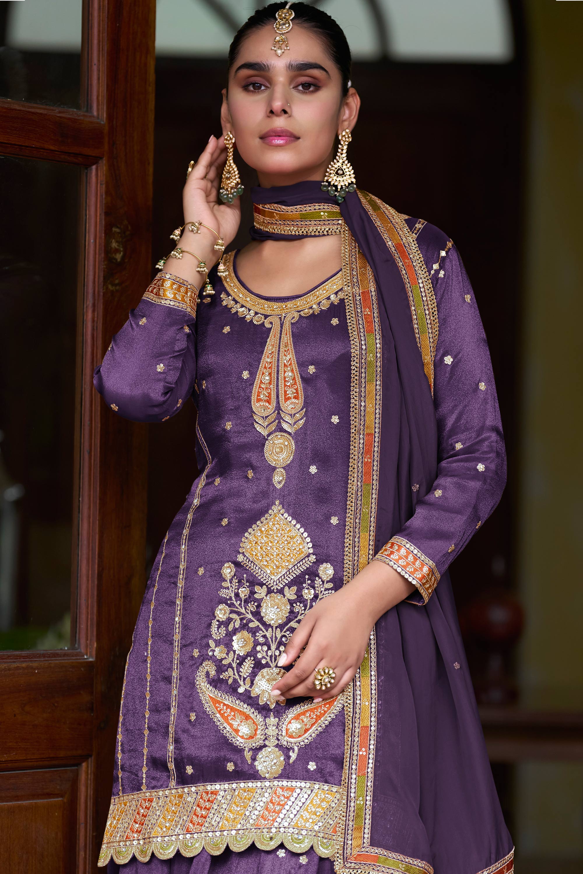 Purple Art Silk Designer Readymade Palazzo Salwar Kameez