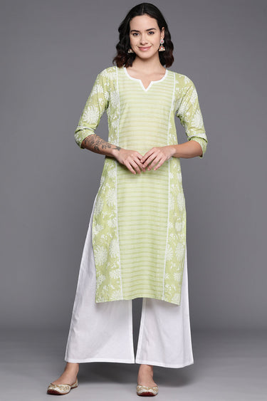 Exclusive Green Cotton Fabric Function Wear Floral Printed Readymade Top With Bottom Set