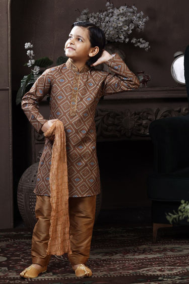 Light Brown Color Cotton Fabric Printed Function Wear Readymade Boys Kurta Pyjama