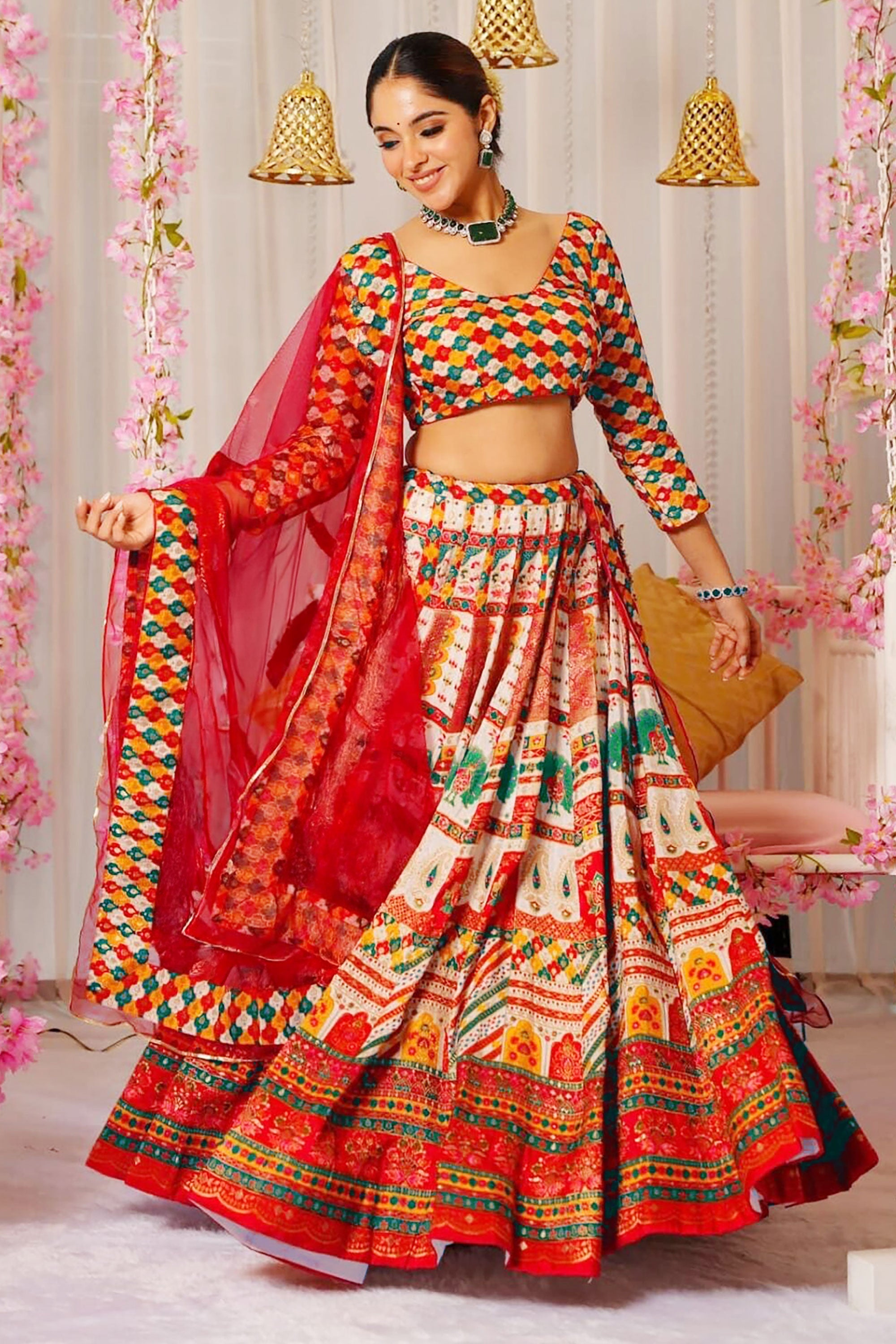 Red Art Silk Festive Wear Readymade Crop Top Lehenga