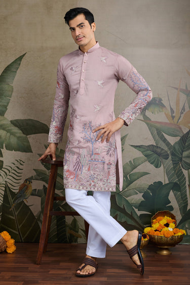 Peach Festive Wear Readymade Lovely Kurta For Men