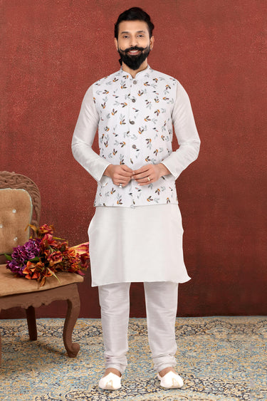 White Dhupion Silk Graceful Readymade Men Kurta Pyjama With Jacket