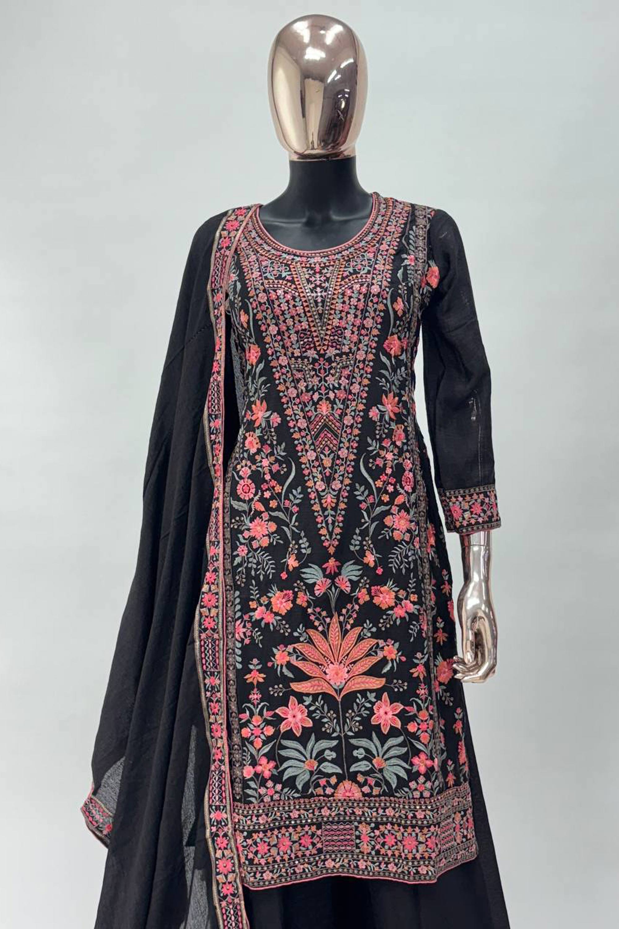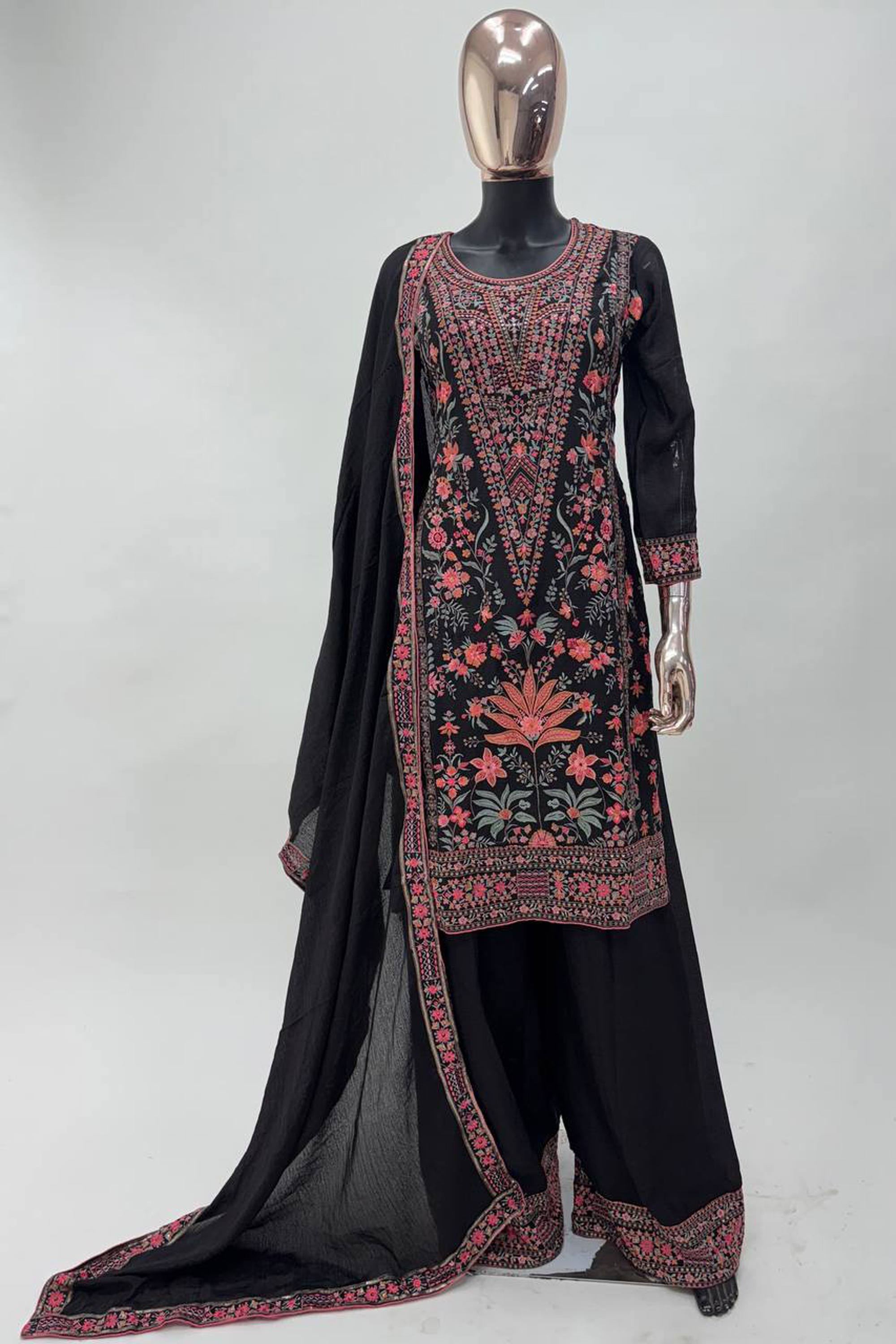 Chinon Embroidered Black Palazzo Suit For Function Wear