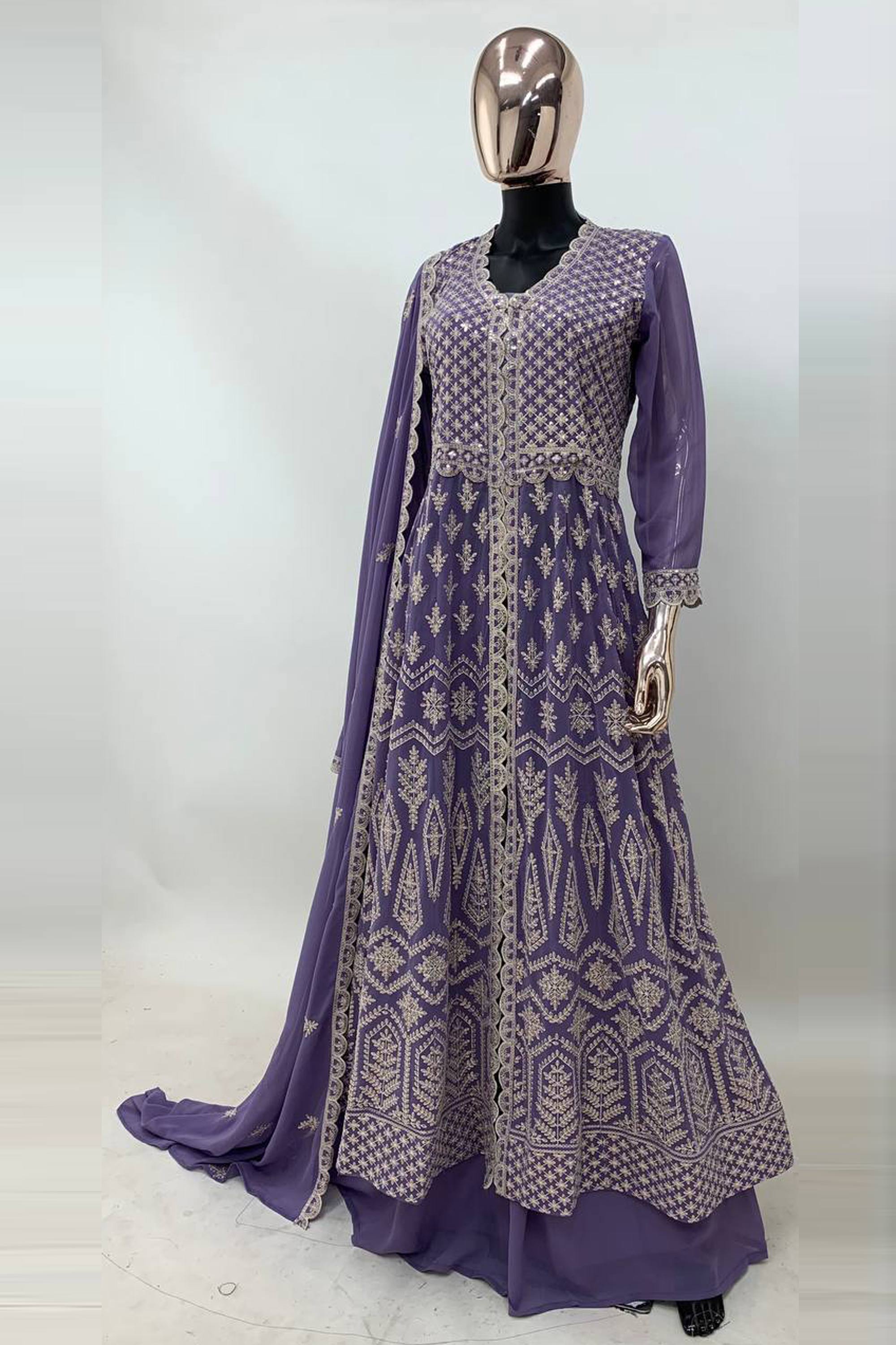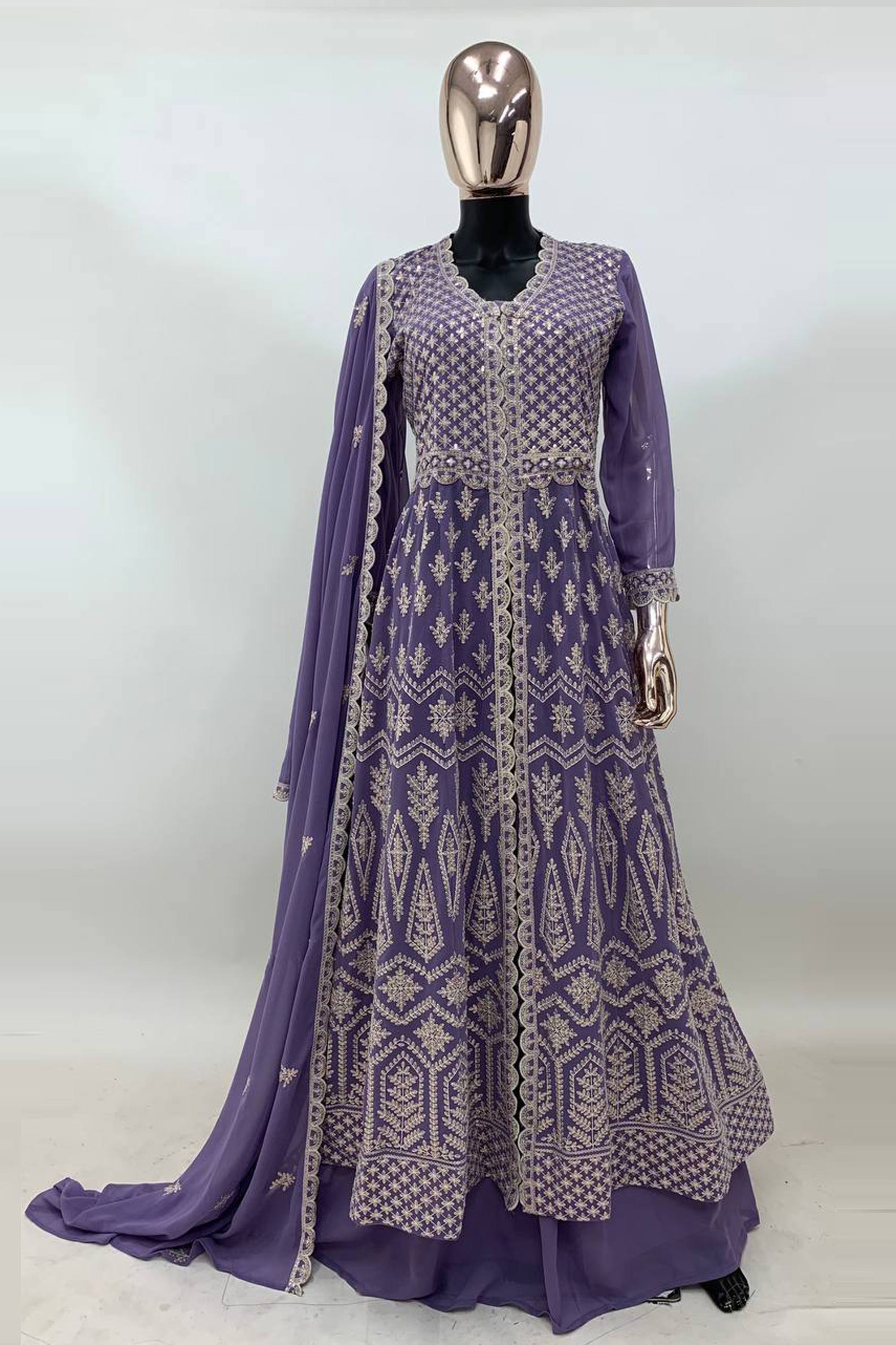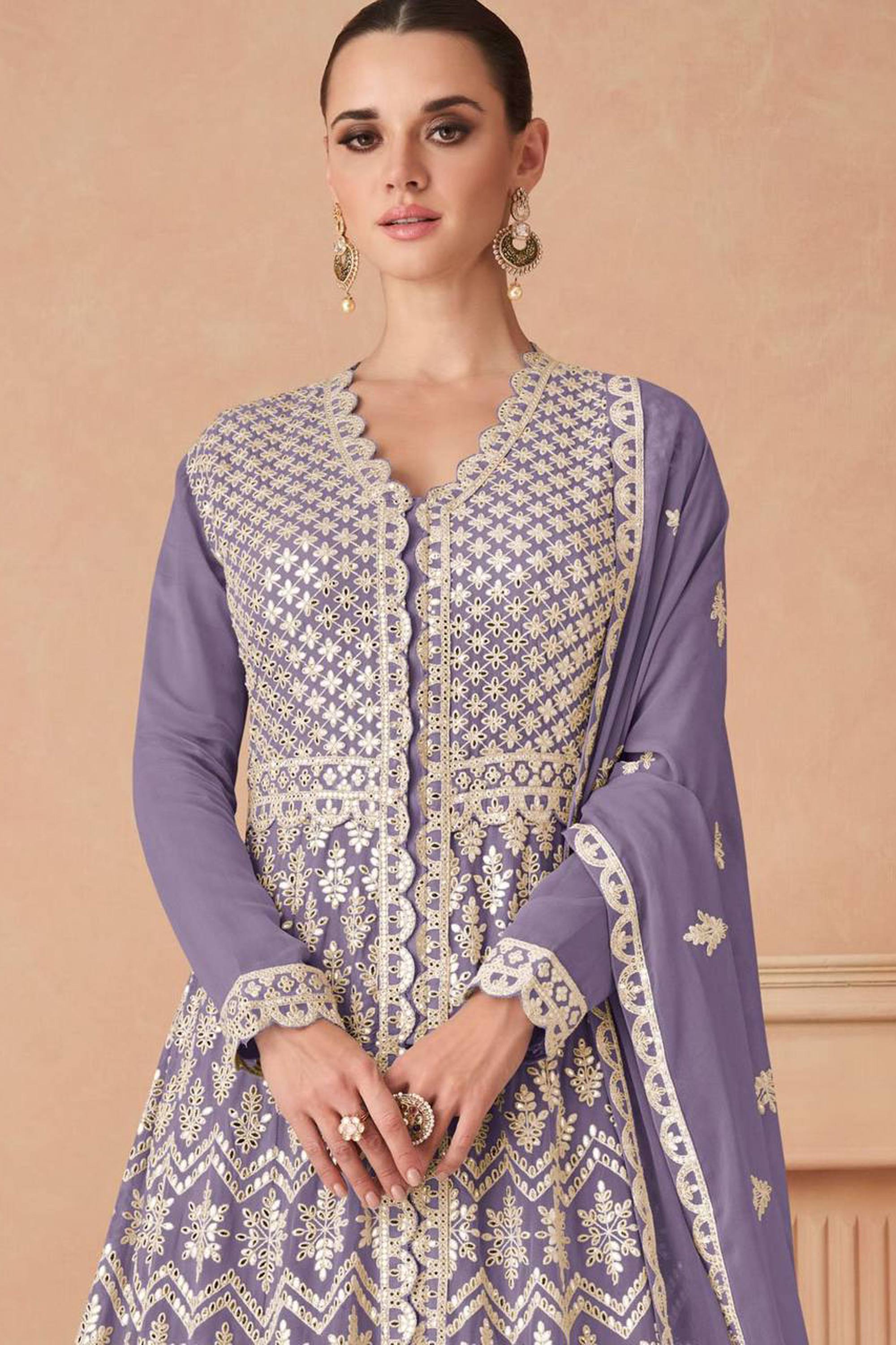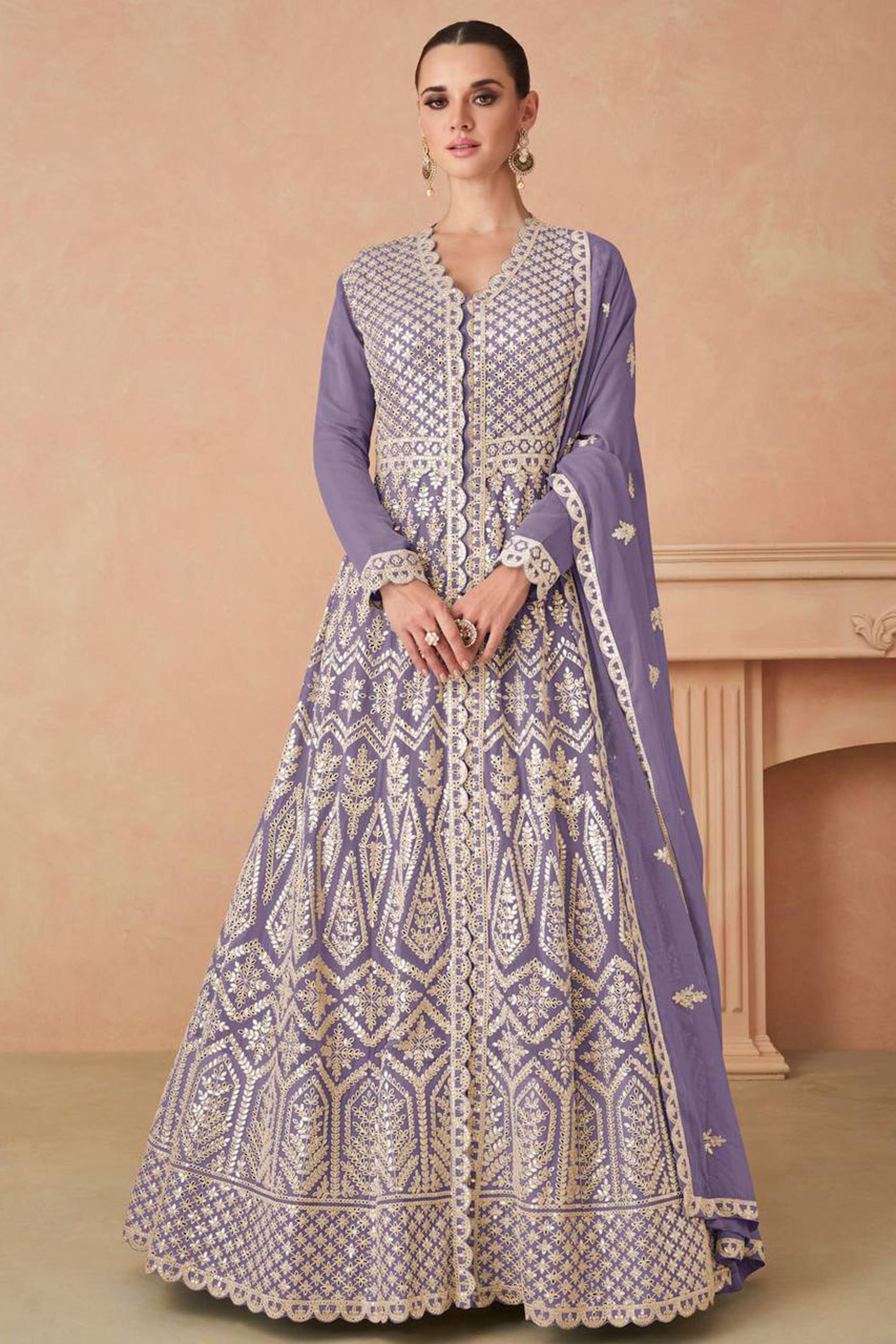 Georgette Embroidered Lavender Function Wear Anarkali Suit