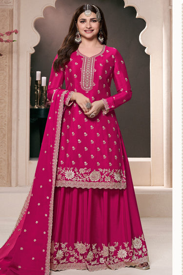 Step into timeless elegance with the Prachi Desai Chinon Fabric Embroidered Palazzo Salwar Kameez. This beautifully designed outfit in rich color is crafted from high-quality Chinon fabric, ensuring both comfort and durability. The intricate embroidery work adds a touch of sophistication, making it perfect for special occasions or festive events. Pair it with traditional jewelry to complete the look and stand out in any gathering.