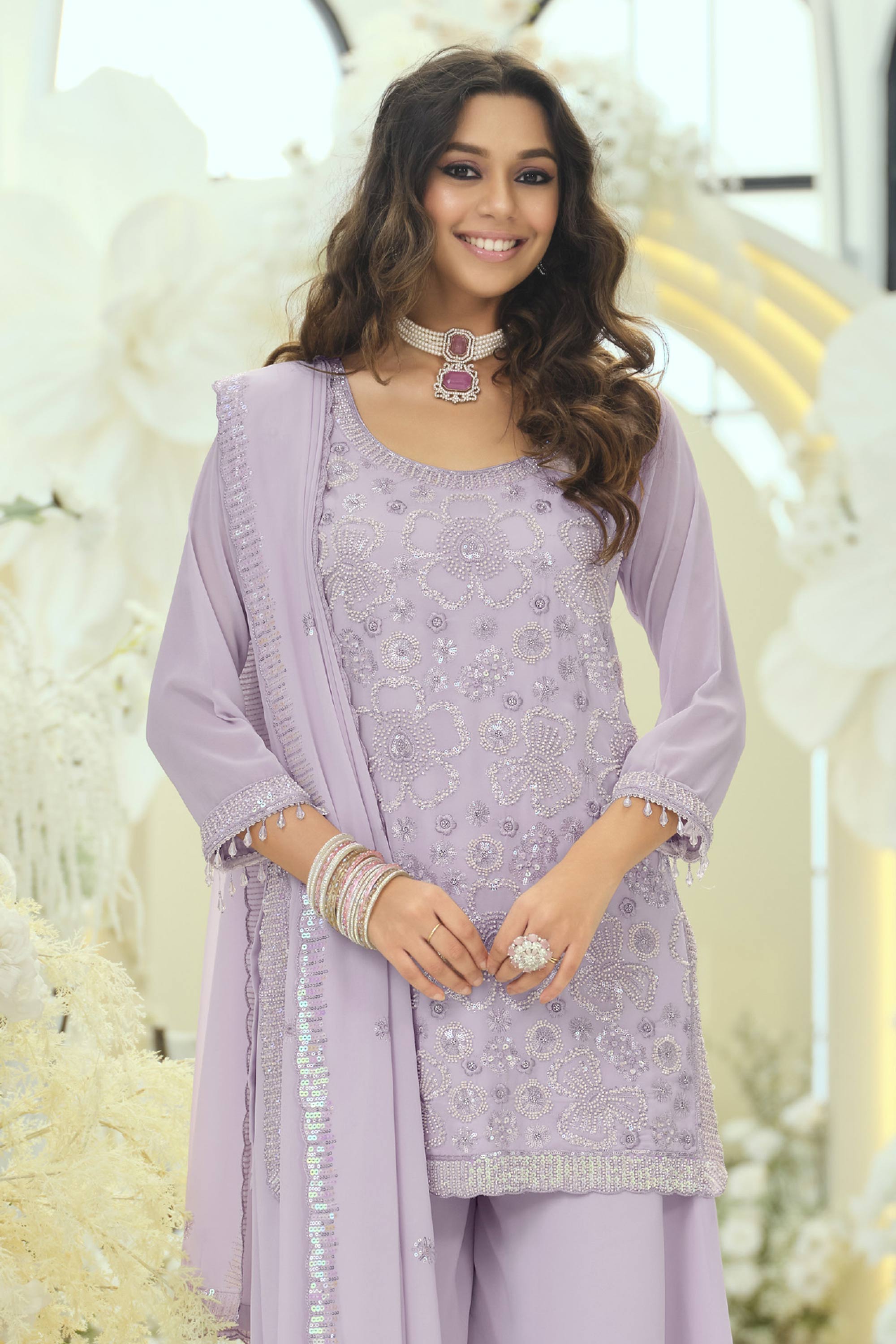 Georgette Embroidered Lavender Festive Wear Readymade Palazzo Suit