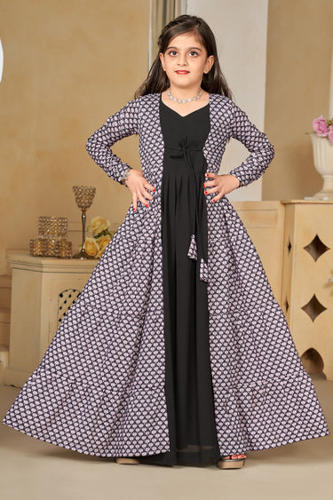 Gorgeous Black Color Muslin Fabric Digital Printed Function Wear Readymade Kids Gown With Shrug