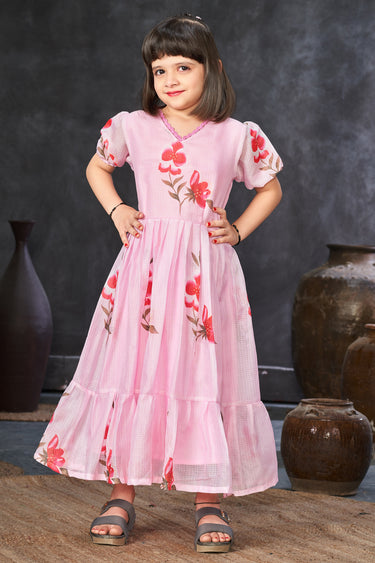 Gorgeous Pink Color Fancy Fabric Digital Printed Function Wear Readymade Kids Gown